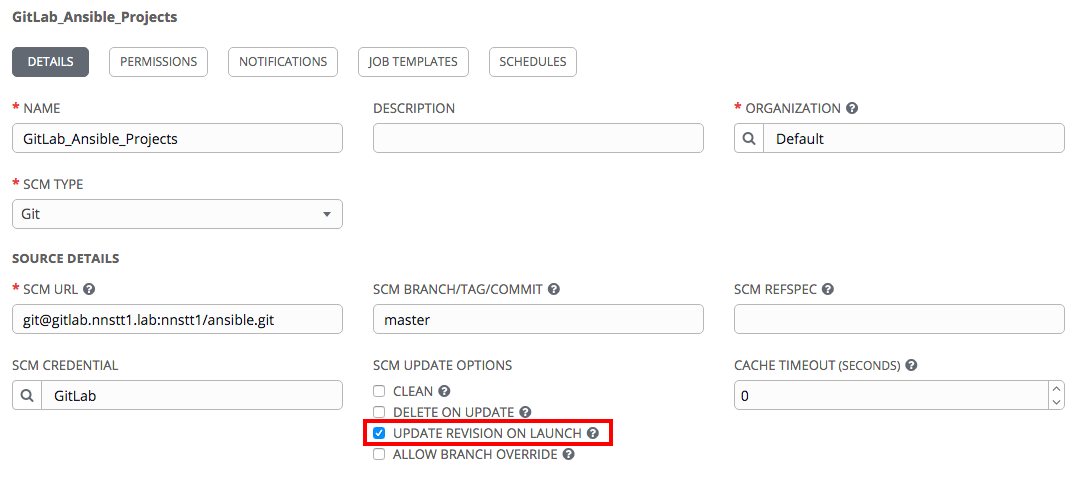 - AWXのプロジェクトはGitLabと連携済み