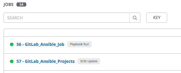 上記のファイルをリポジトリに配置したり必要な変数を設定すれば、リポジトリ更新時にCIが動いてAPI経由でAWXのプロジェクト同期処理が実行されます。GitLabは特定ブランチの更新時だけWebhookと飛ばすことができるのですが、APIの場合も.gitlab-ci.ymlを使うのでブランチ毎の設定が可能です。