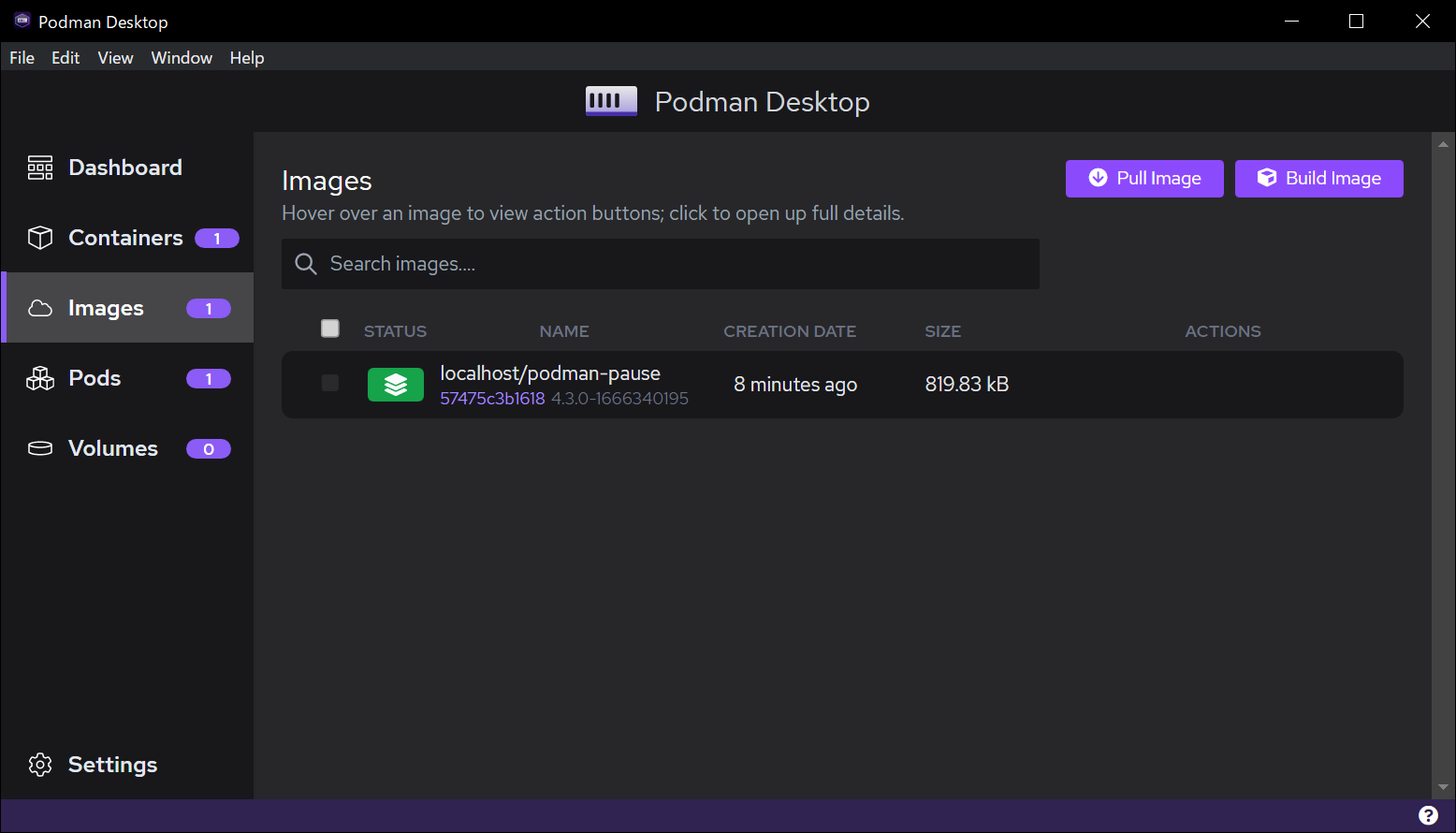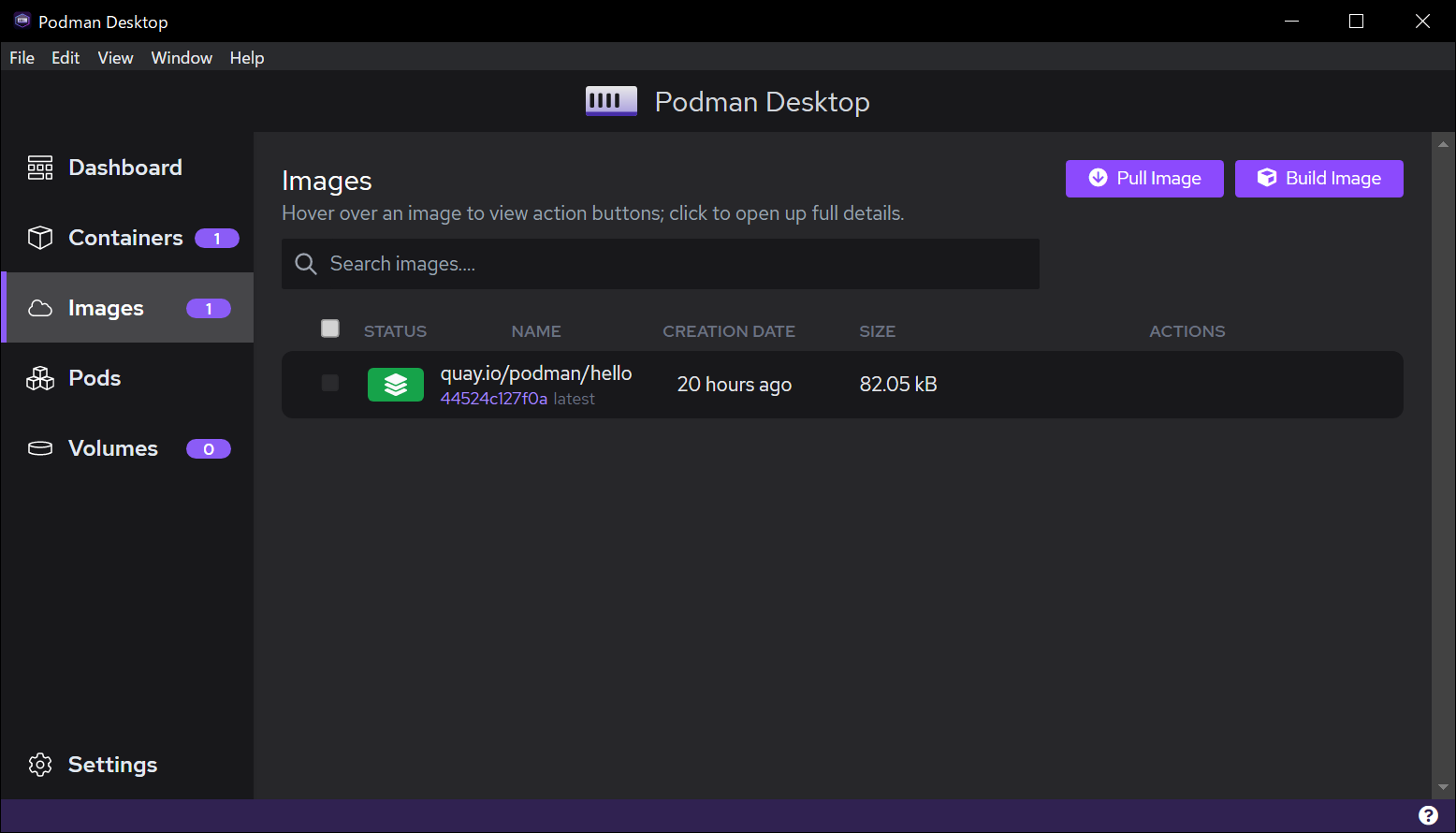 そして、よく見ると [Containers] と [Images] がそれぞれ 1 になっています。