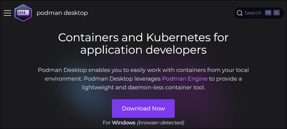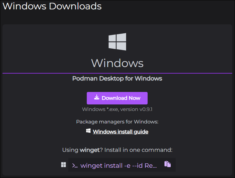 Podman Desktop 公式ページ に MacOS, Windows, Linux の各環境向けインストールマニュアルがあります。 今回は Windows 向けマニュアルを参照しました。
