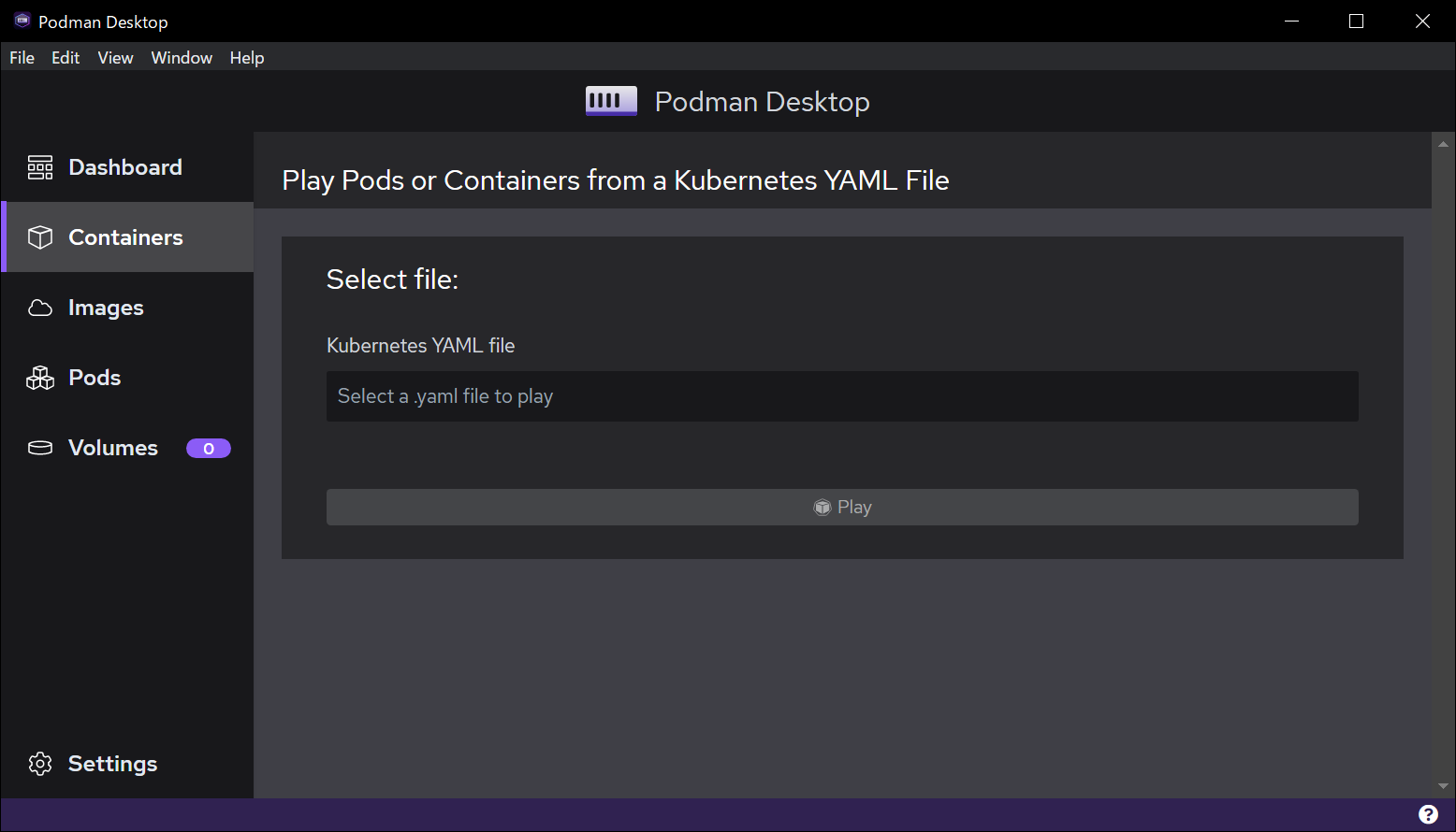 他にも [Play Kubernetes YAML] ボタンがありますが、そちらを押すと Kubernetes のマニフェストファイルを選択して実行(?)できるようです。