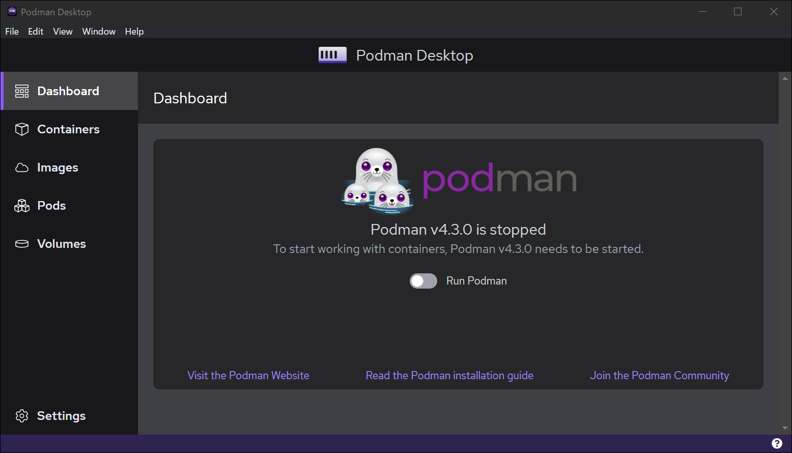 Podman Desktop がリリースされたので Windows にインストールしました。 インストールしただけです。