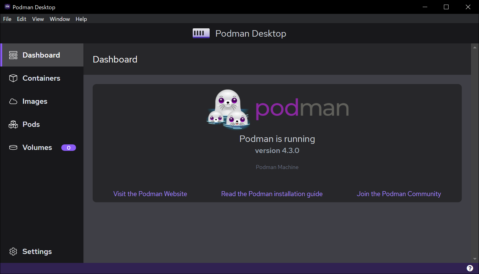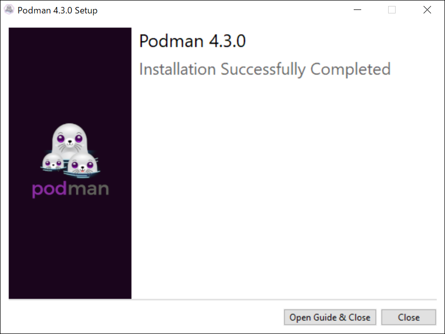 初期化が終わると「Podman v4.3.0 is stopped」と表示されていました。