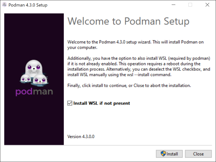 さきほどのダイアログで [Yes] を選択すると Podman のインストールウィザードに移ります。