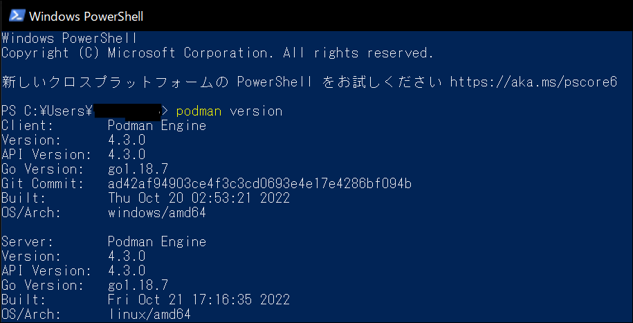 恐る恐る podman version を試してみると……。