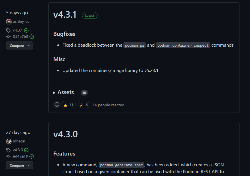 GitHub のリポジトリを見ると v4.3.0 最新ではありませんでしたが、27 日前リリース (2022/11/15 時点) だったので比較的新しいものがインストールされるようです。