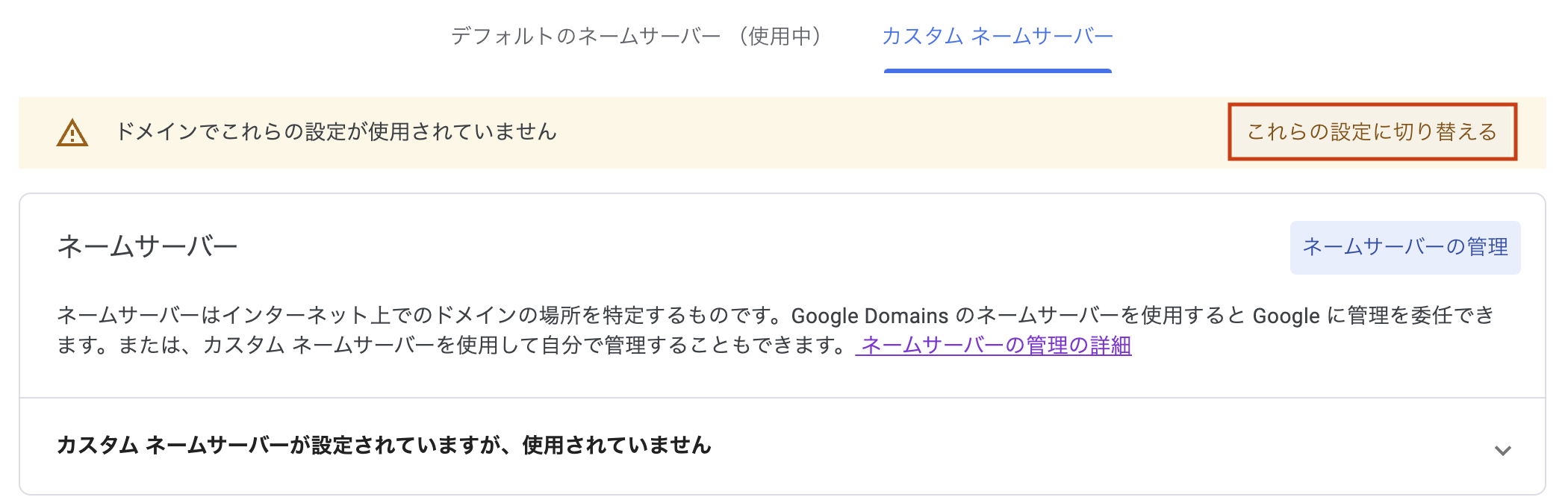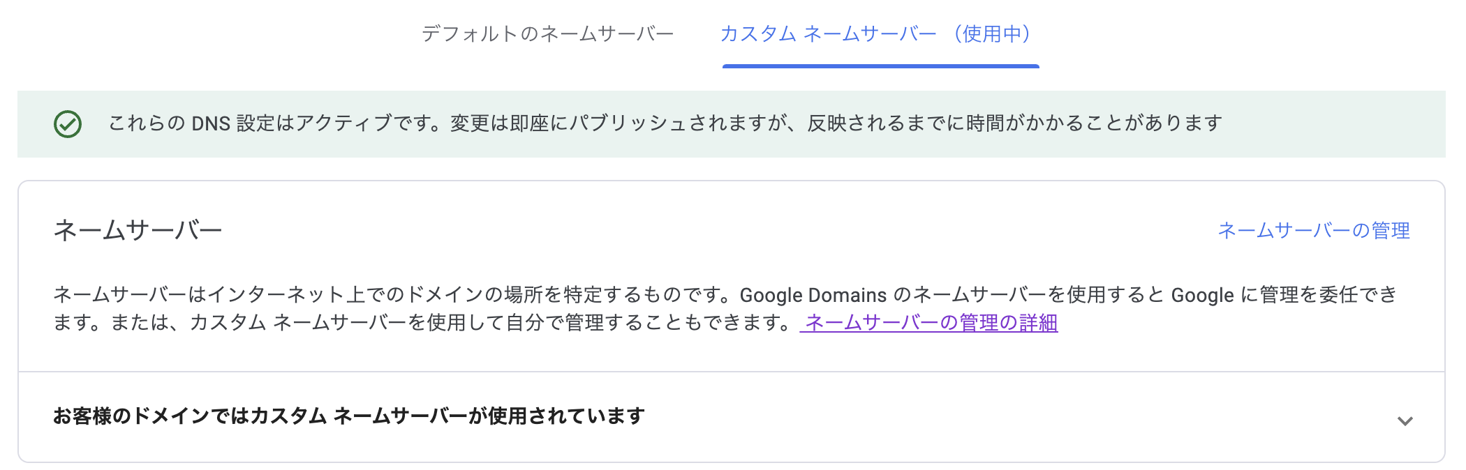 Azure DNS にレコードを登録できたら Google Domains でカスタムネームサーバを使用するように設定します。
