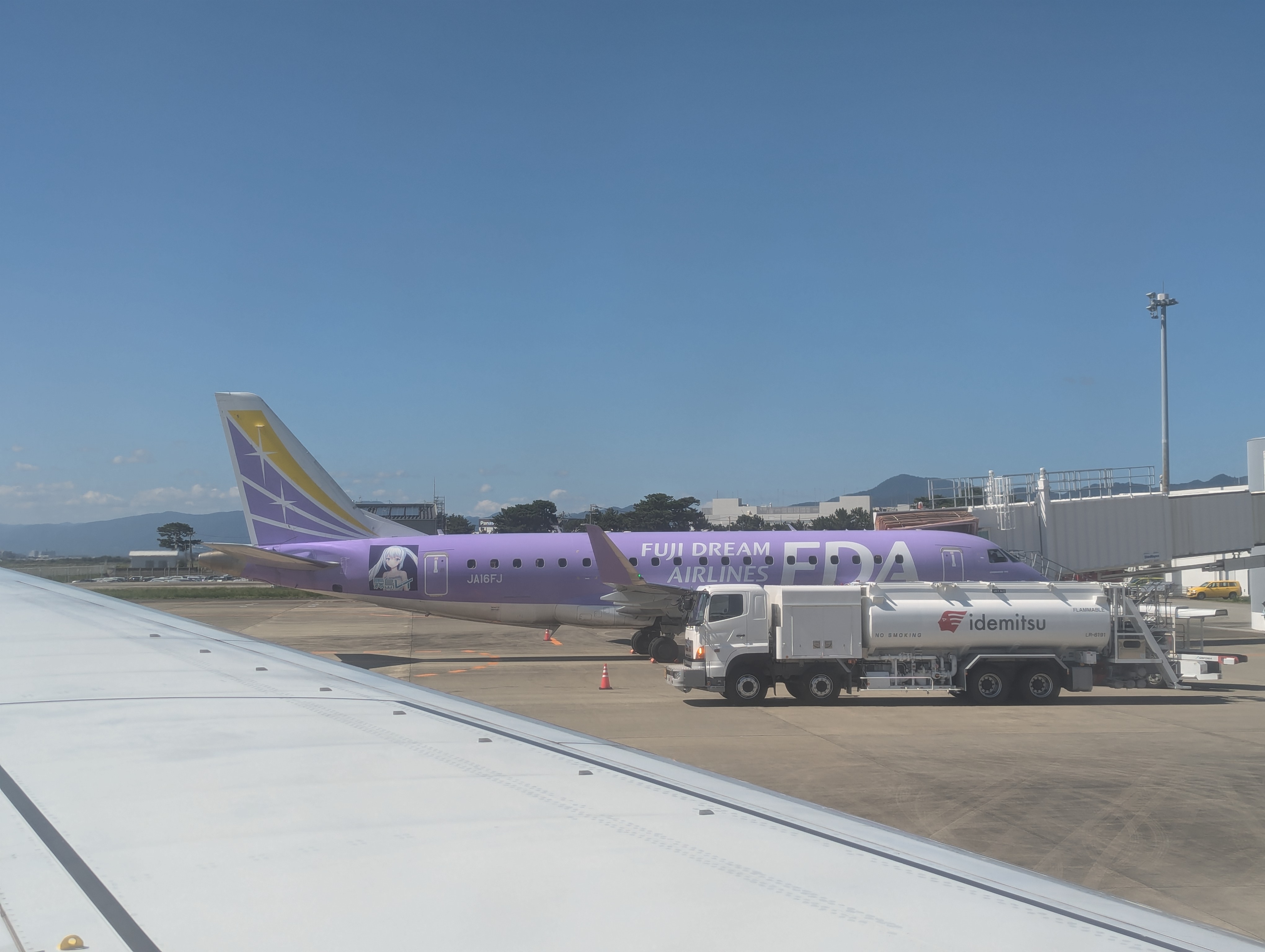 普段は見かけないフジドリームエアラインズの機体を発見。 帰国して調べてみるとチャーター便だったみたい。