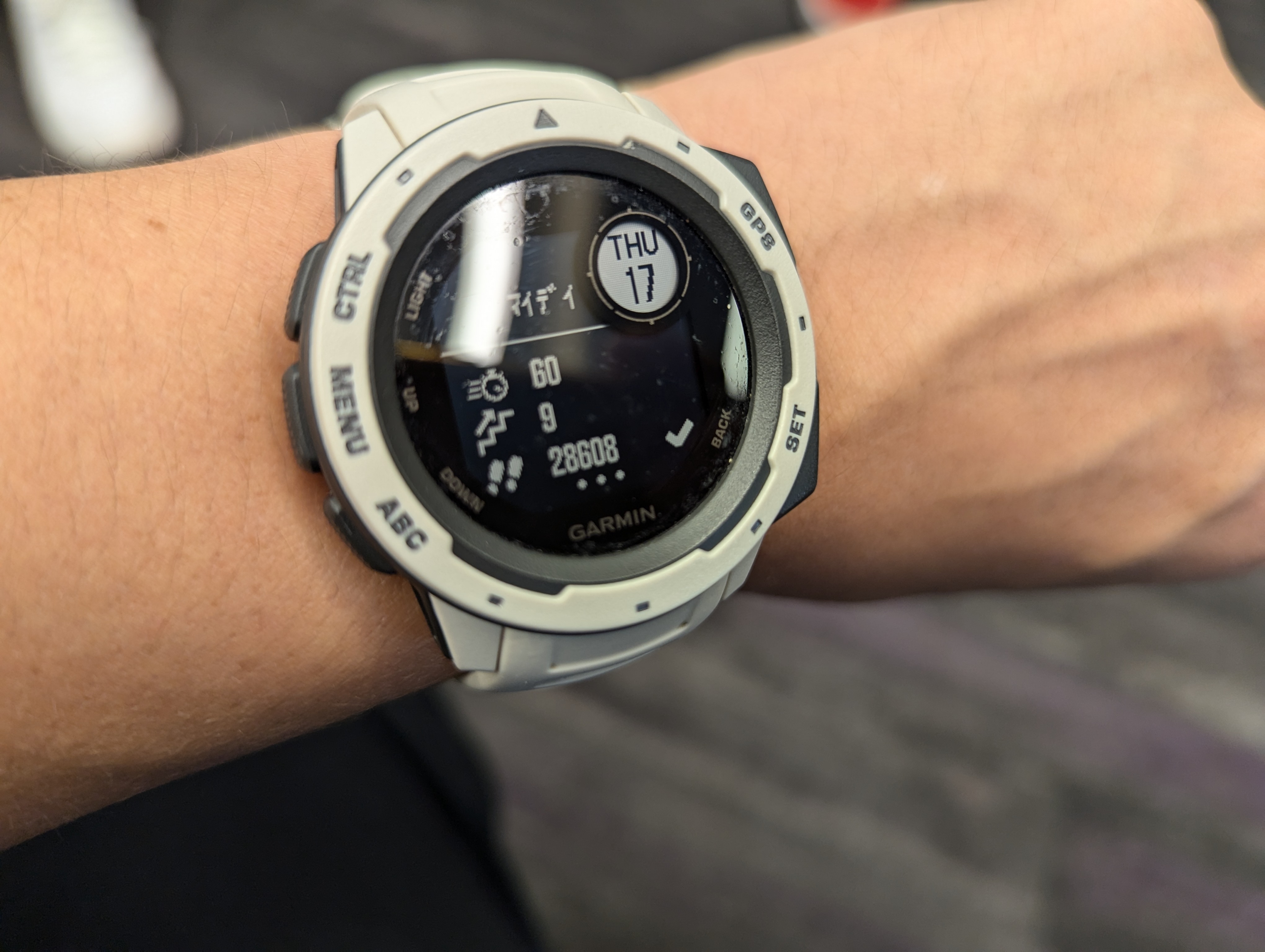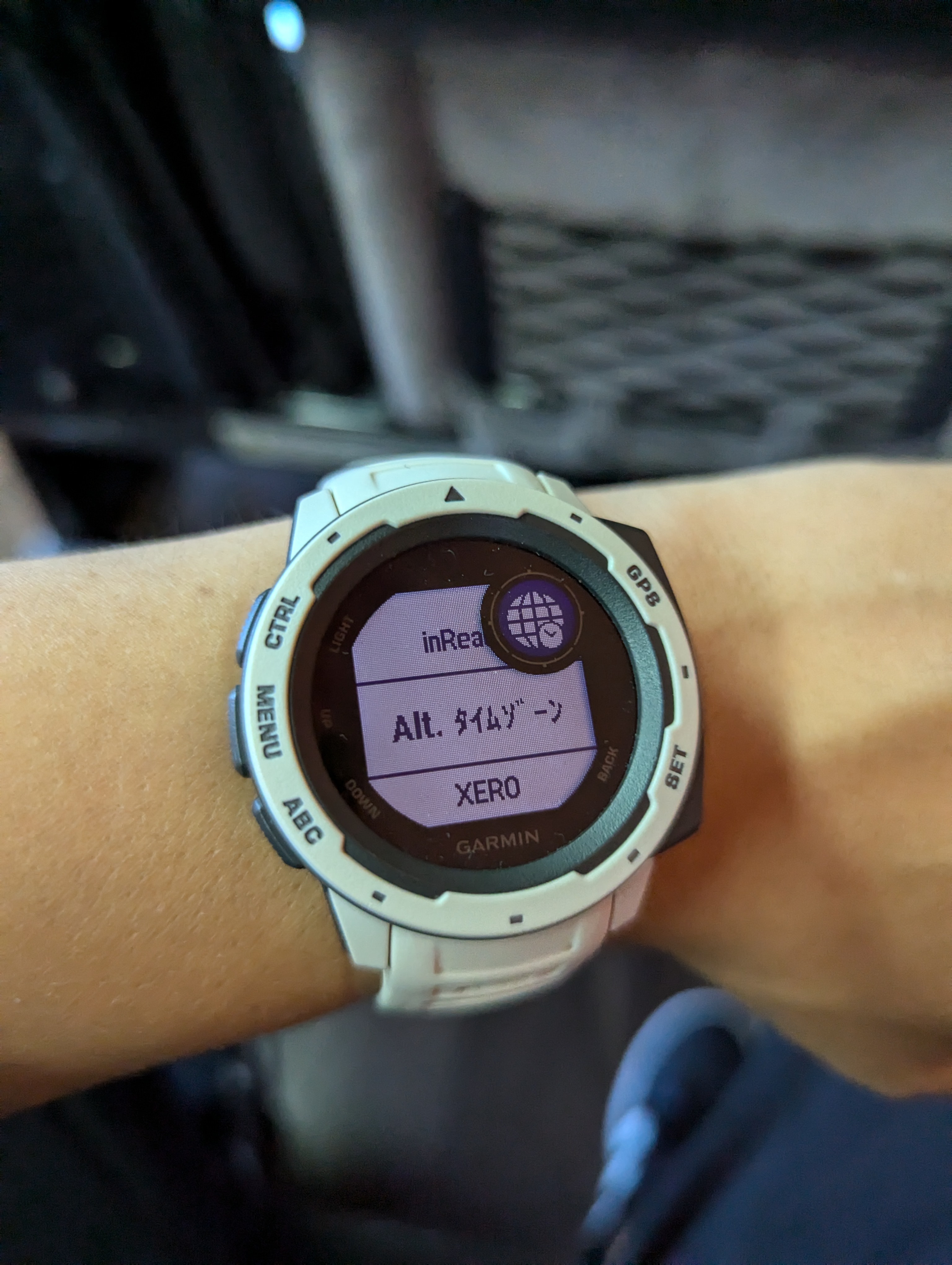 バスの中でスマートウォッチのタイムゾーンにボストンを追加。
