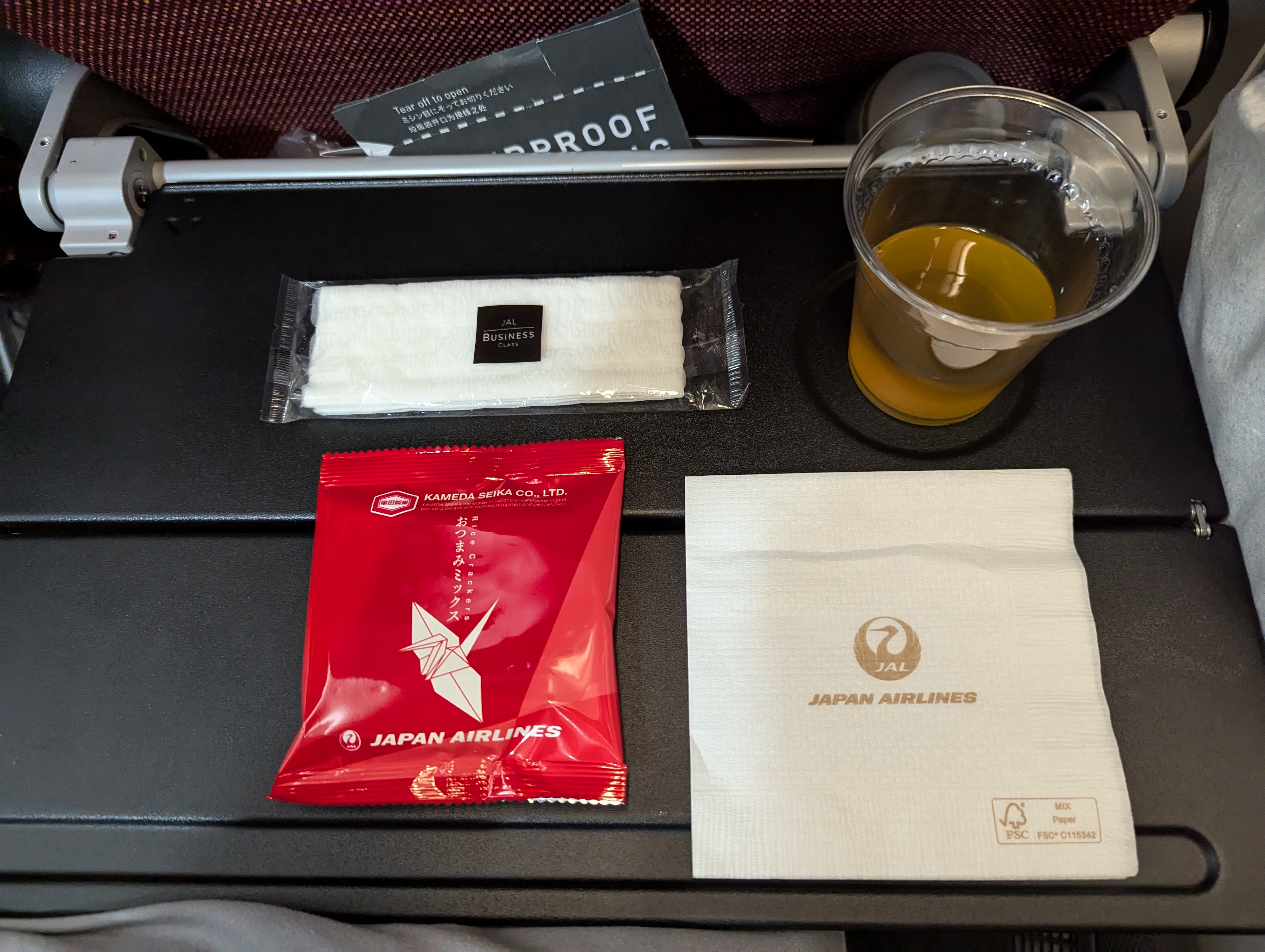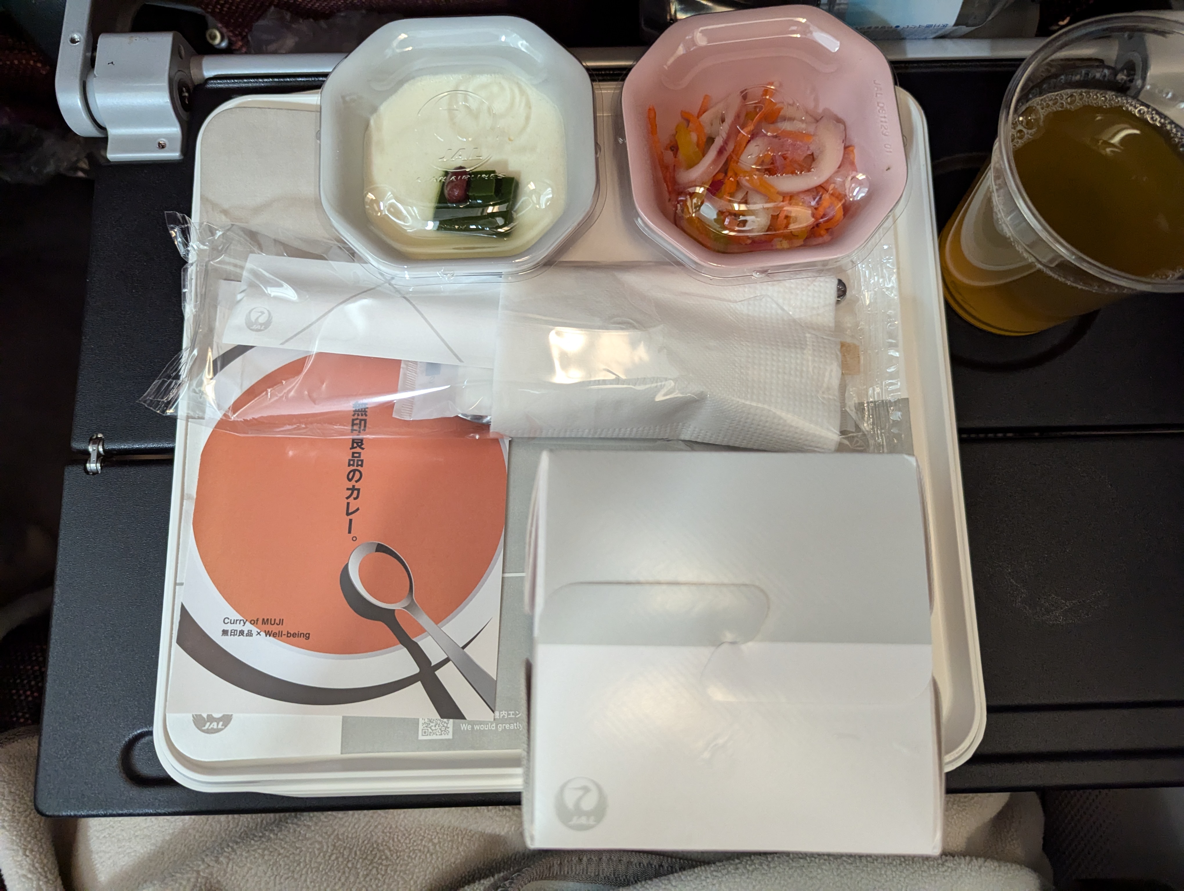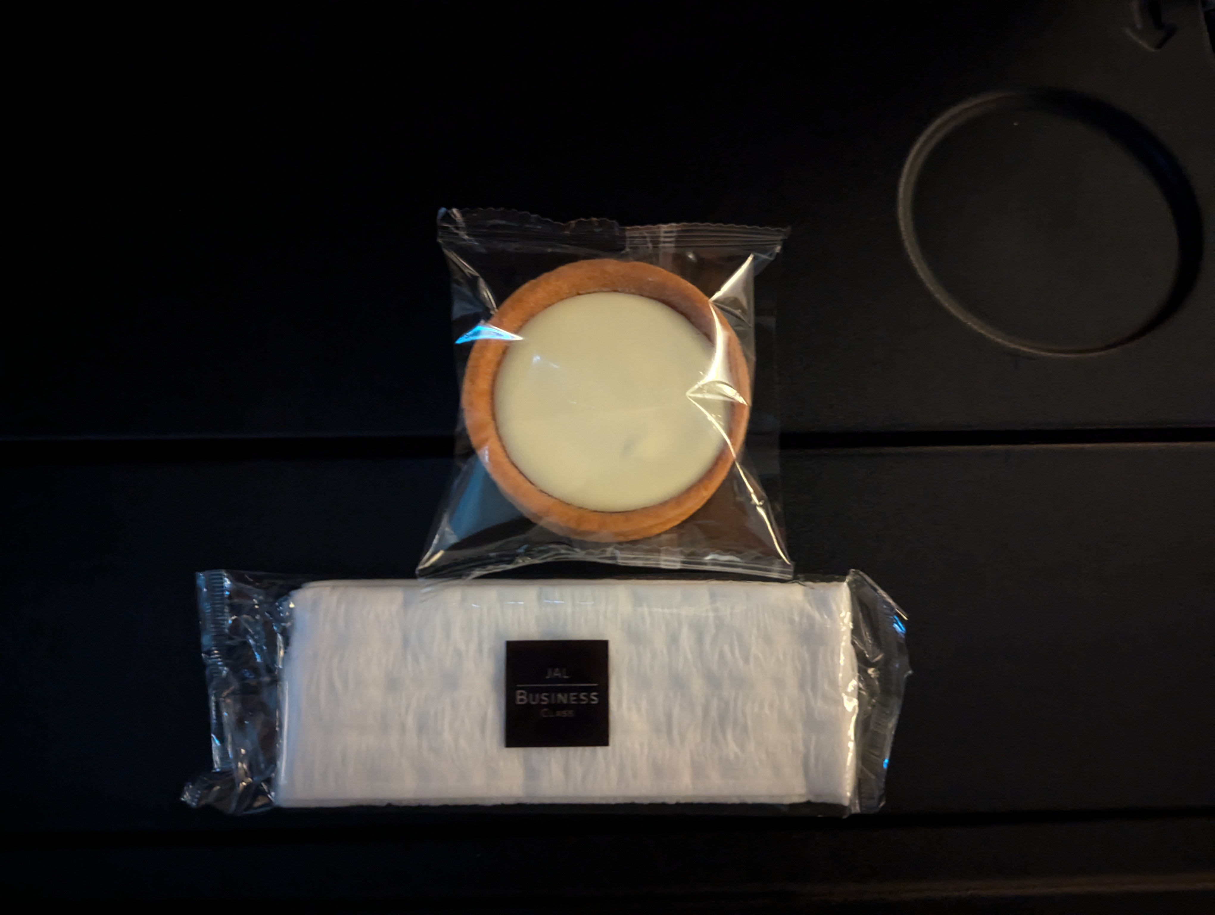 起きるとちょうどおやつタイム、アイスクッキーっぽいもの。 なんと空席を挟んだ隣席のご夫婦が自分たちは要らないからとアイスクッキーを2つ譲ってくれた。 ご厚意を無駄にするわけには、と思いありがたくいただく。 お土産にしようかと思ったけど溶けそうだったので自分で2つ食べる、完全にカロリーオーバー。