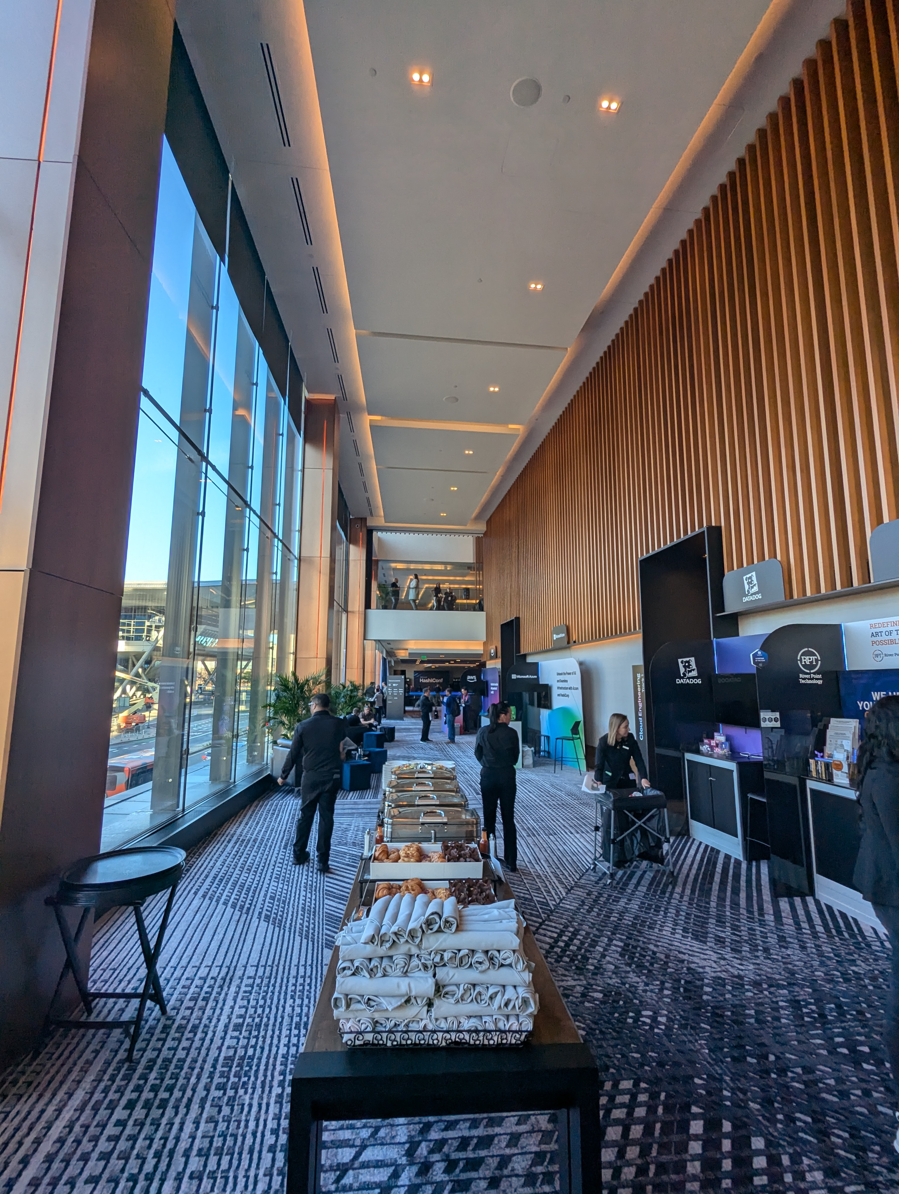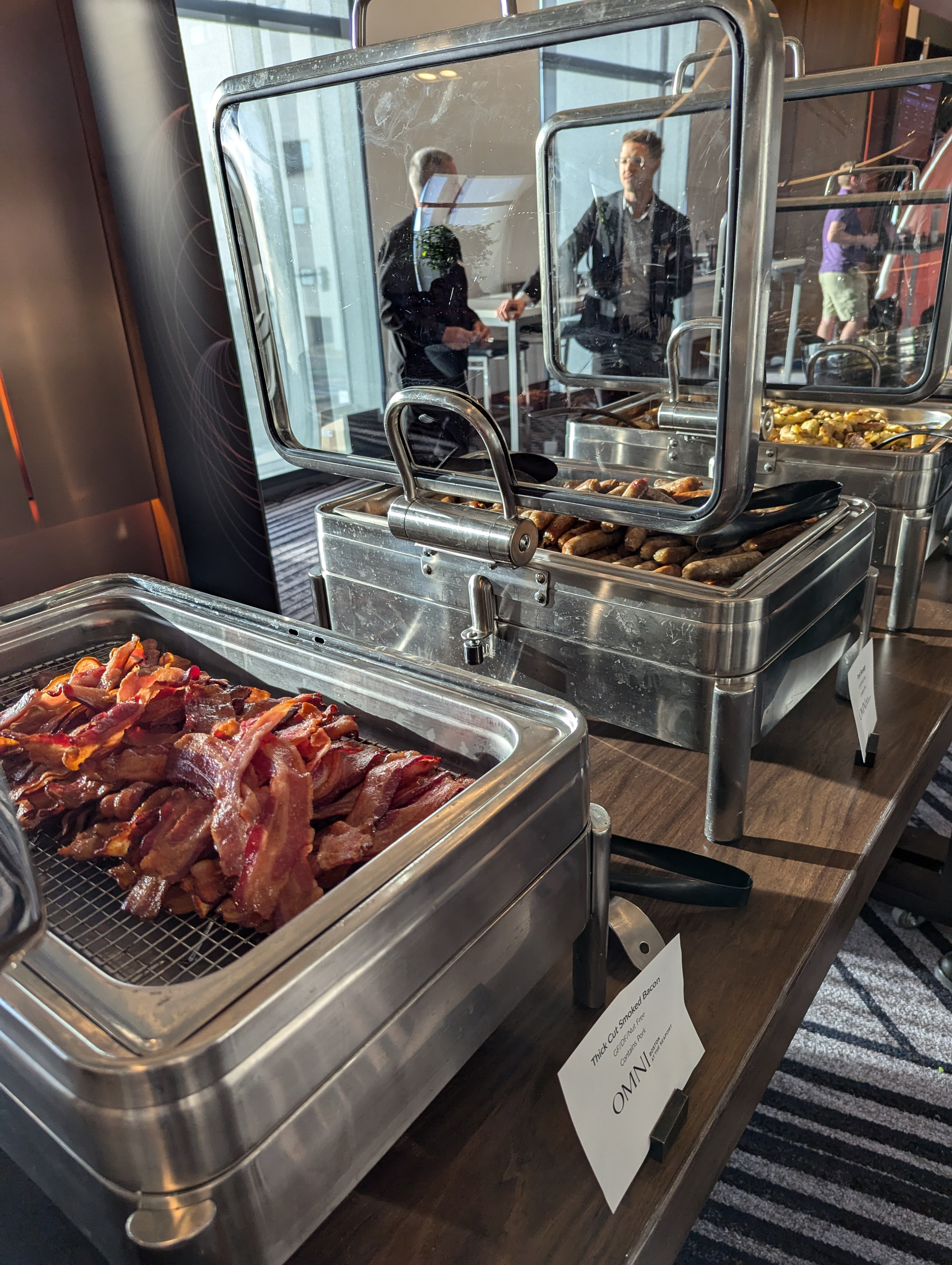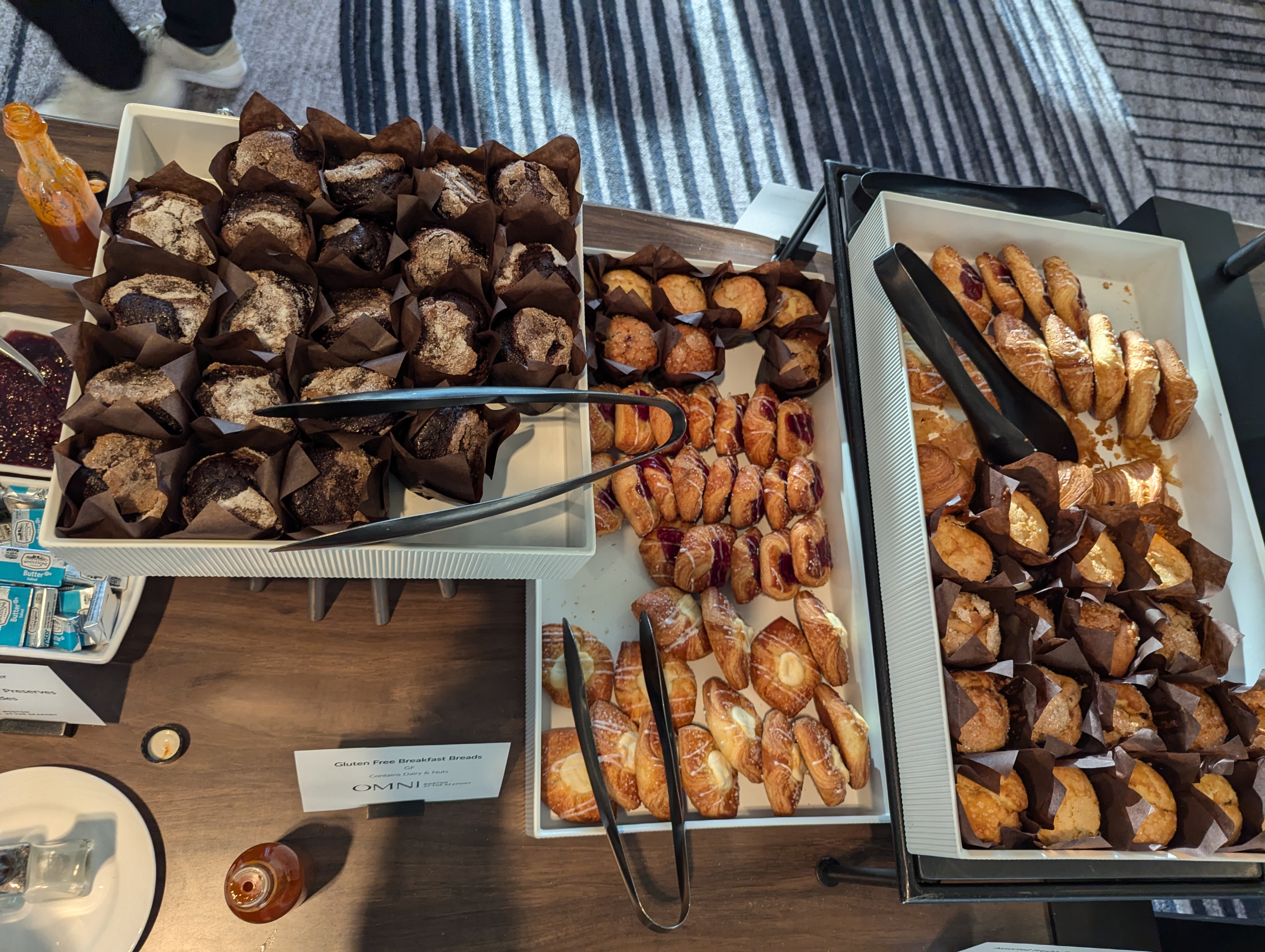 どん兵衛を食べながら家族とテレビ通話したり、Day 1 で発表された情報をブログにしたり、と寝付けない夜を過ごしてたら直食の時間に。 いろんな種類のパンがあってときめいた。