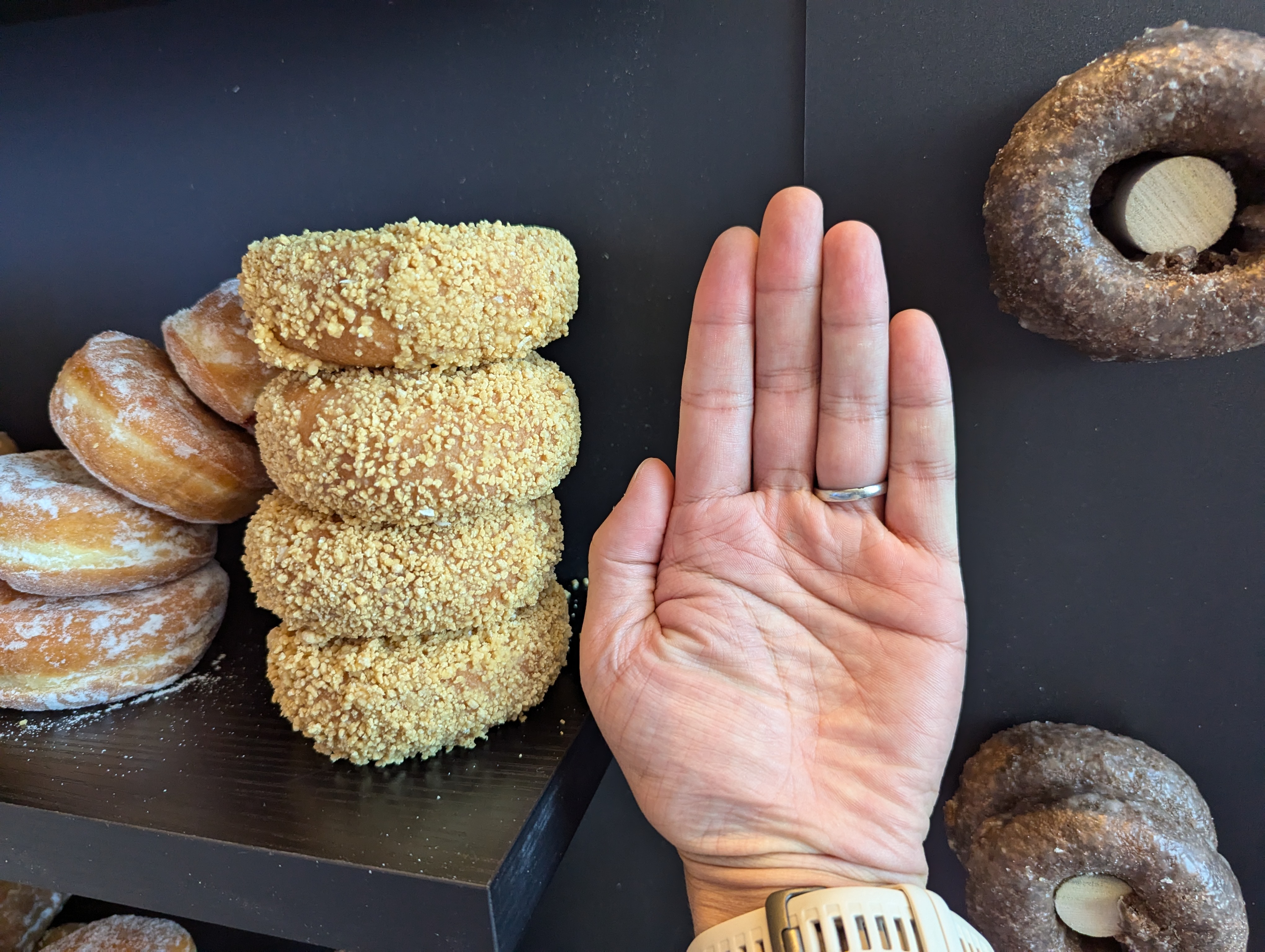ゴールデンチョコレートが至高、ではあるんだけどこんな場所でポロポロこぼす訳にはいかないのでチョコレートドーナツを選択。