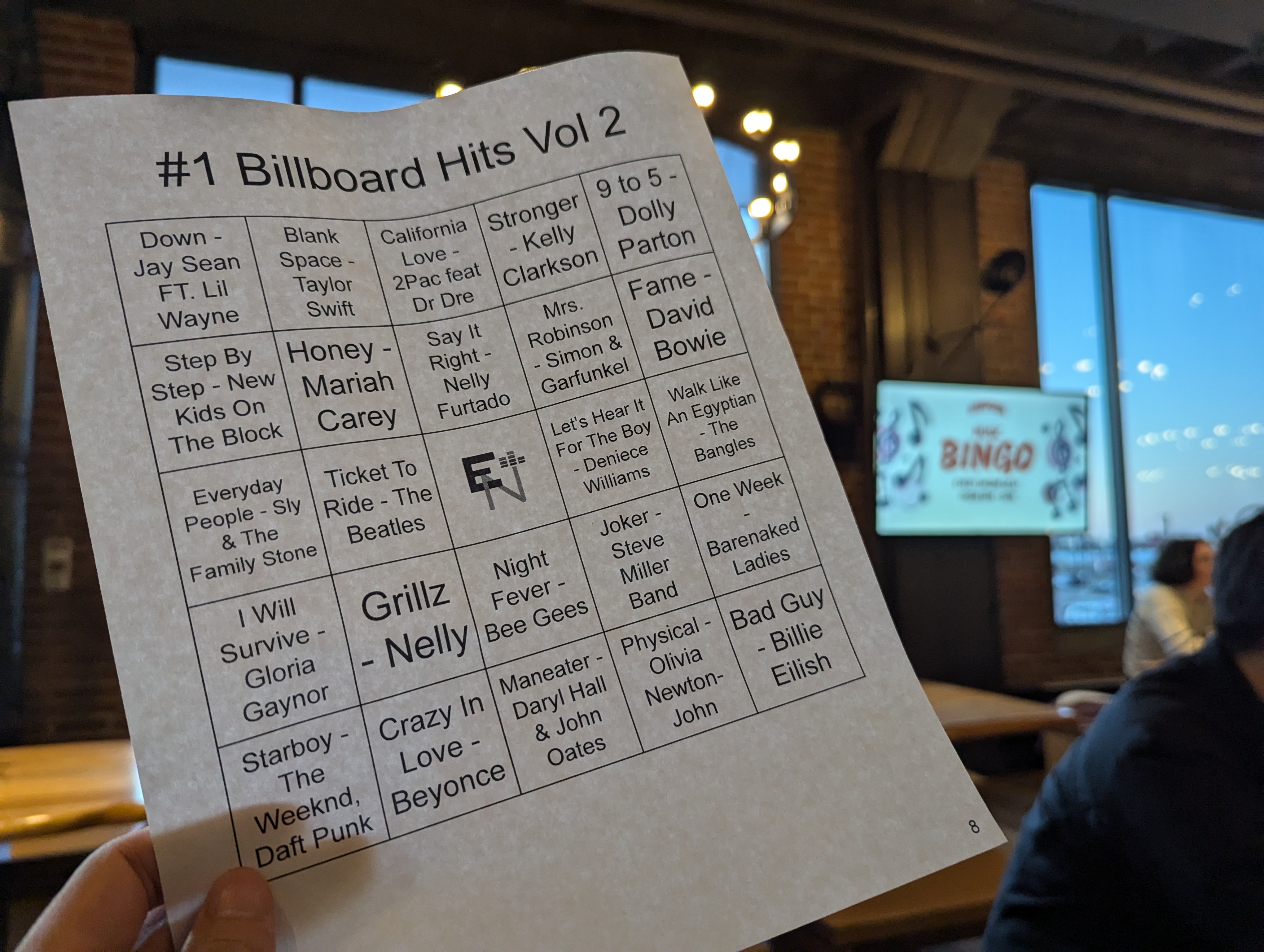 唐突に有名ソングビンゴが始まった。 曲を聞いてもだれも分からないので、一緒に来てくれた方が Shazam を使ってタイトルを特定してくれた。