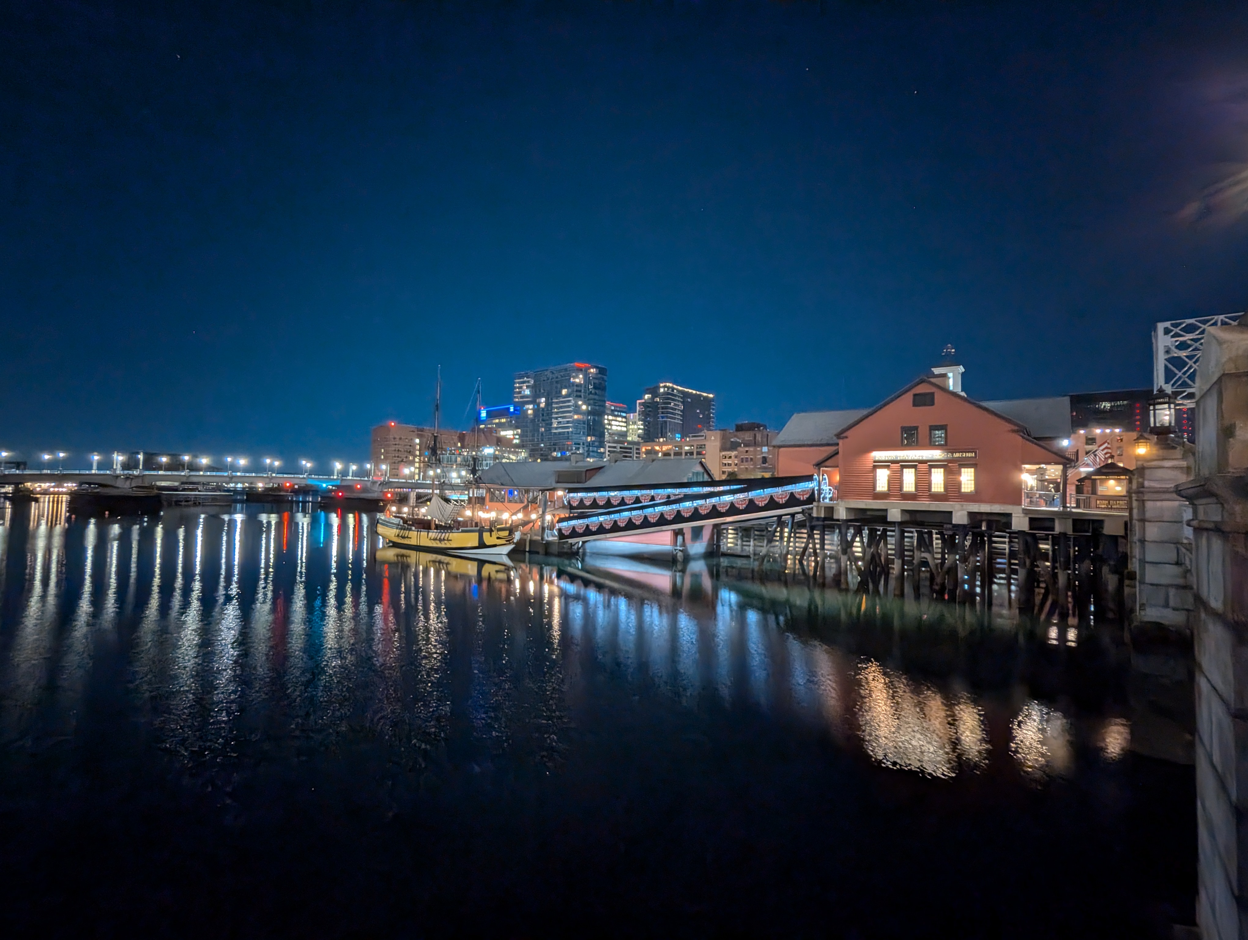 再びボストン茶会事件の船と博物館へ。 静かな川面にライトアップされた光が反射されていて綺麗な絵が撮れた。