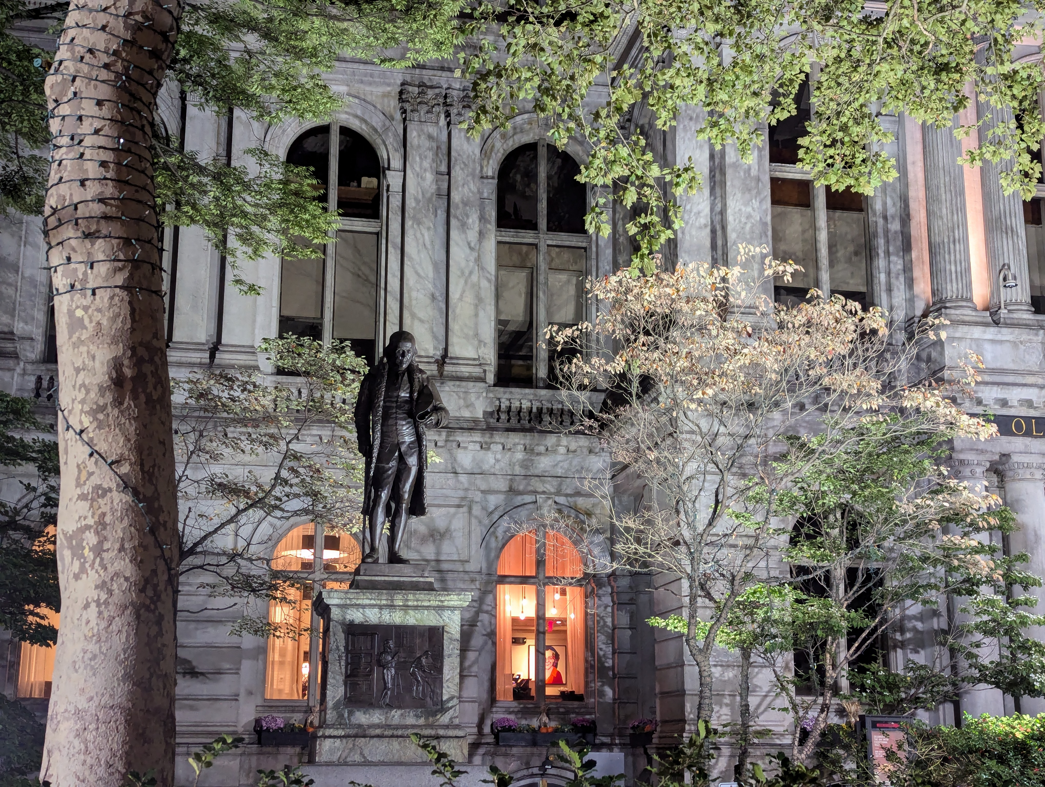 6箇所目、ベンジャミン・フランクリンの銅像と旧ボストン・ラテン・スクール