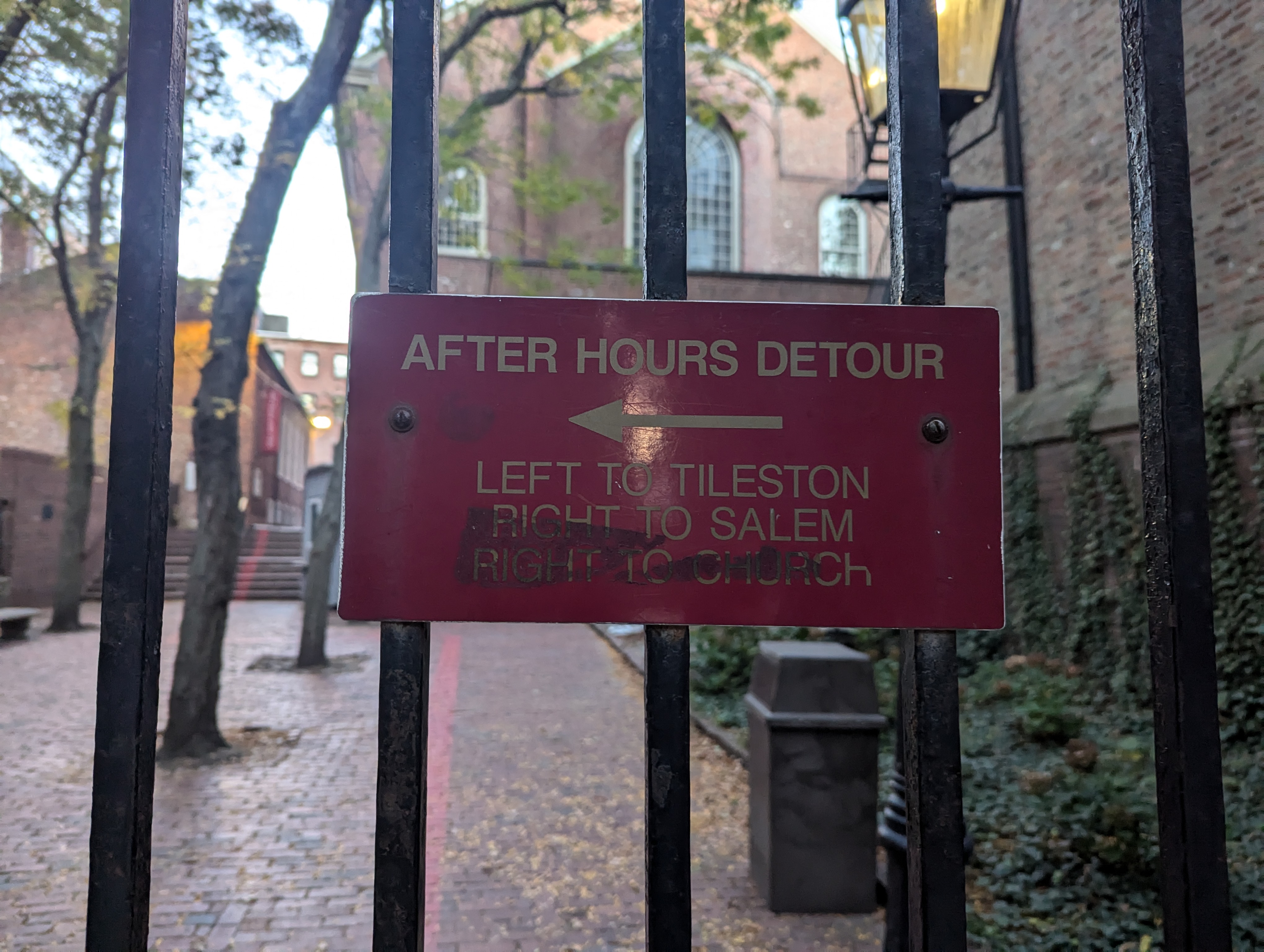 帰り際、フリーダム・トレイルを周り始めた方々とすれ違う。 墓地などは敷地内に入れるようになっていたけど、そのまま素通り。