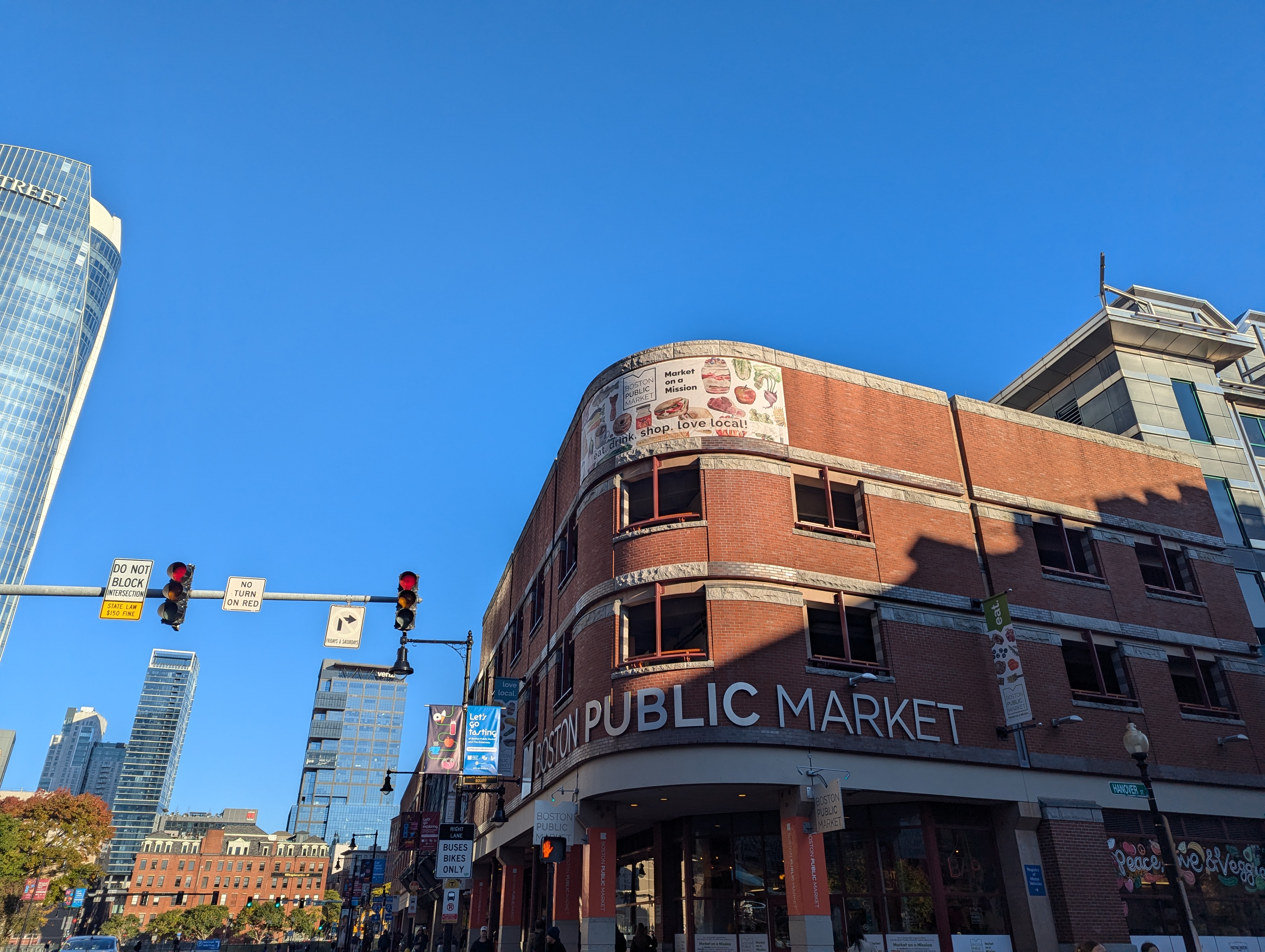帰りもフリーダム・トレイルの赤レンガを頼りにボストン・コモンズへ向かう。 朝起きてから食事をしてなかったので流石にお腹が減り、途中で Boston Public Market という建物に寄って朝ご飯を探す。