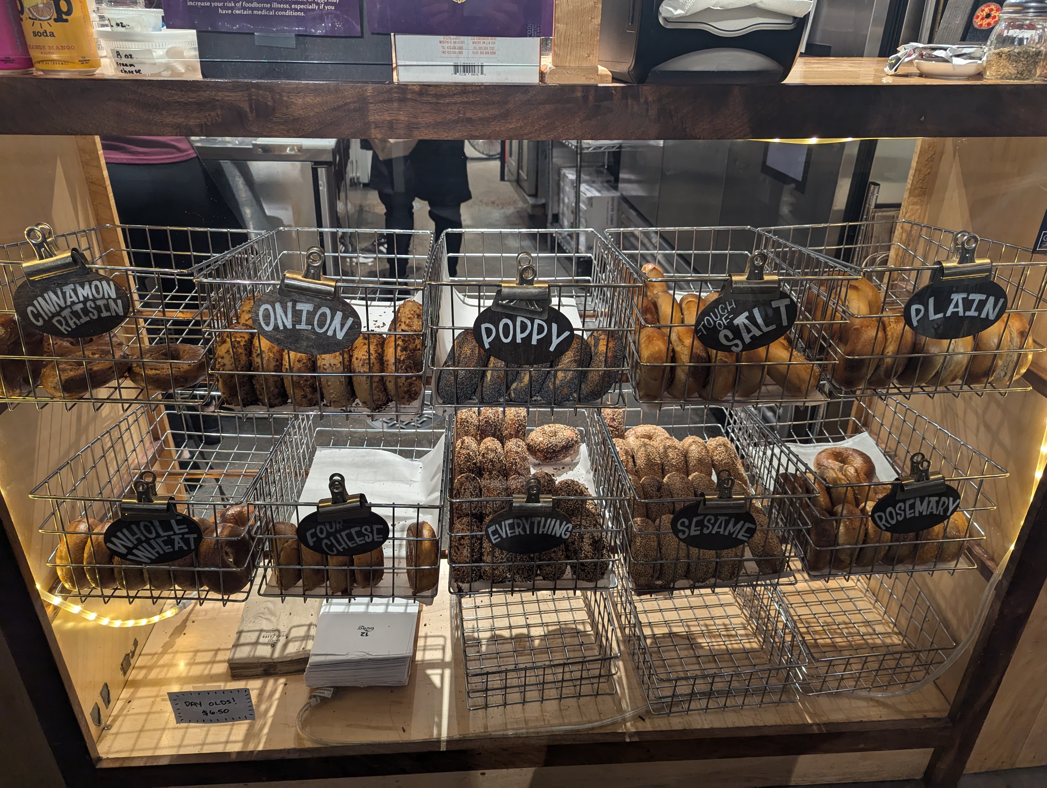 一通り店内を見て回って、通勤中の方々が買っていたベーグル屋に決める。