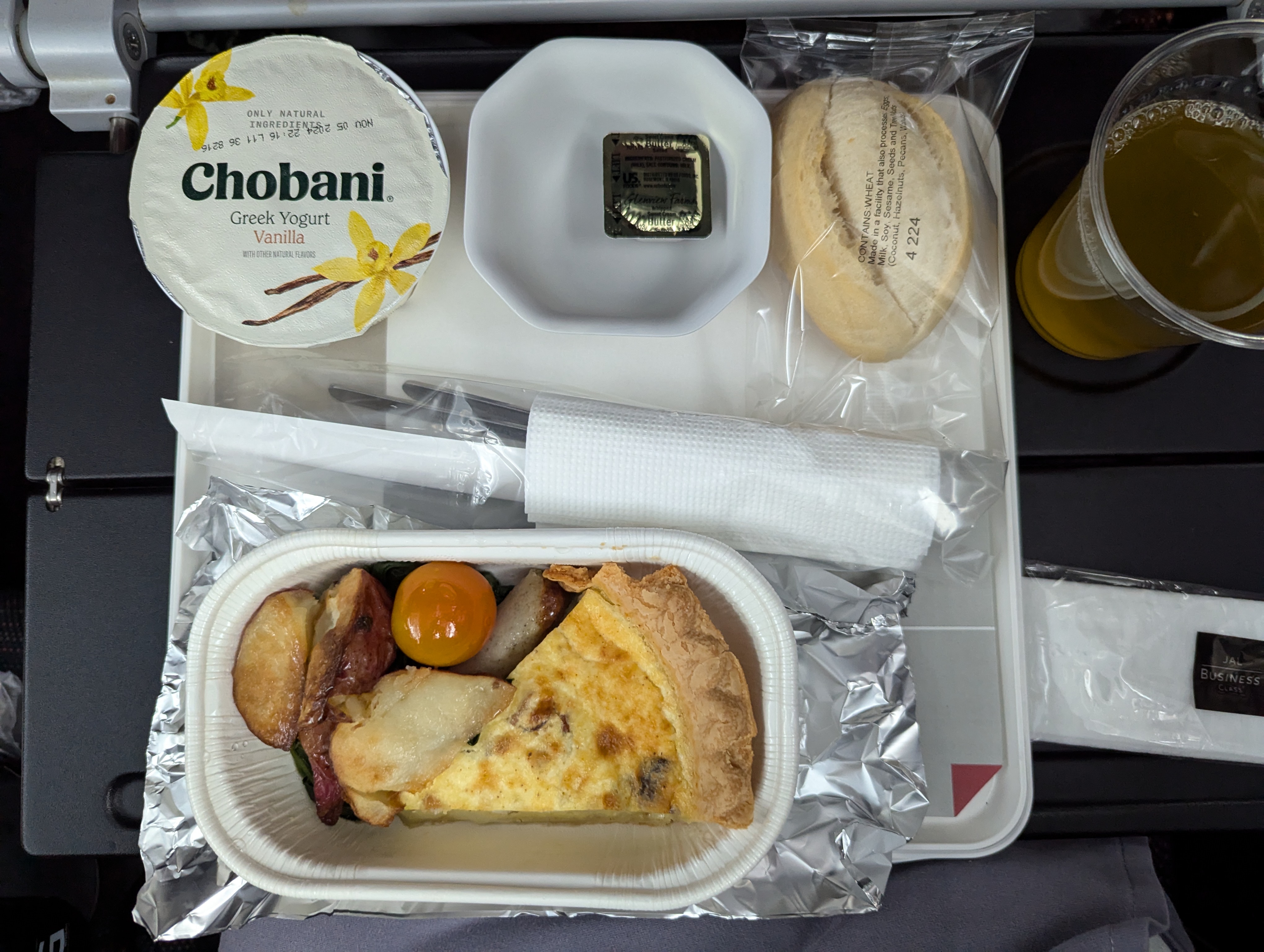 2回目の機内食。 メニューは選べず、洋食のキッシュ。