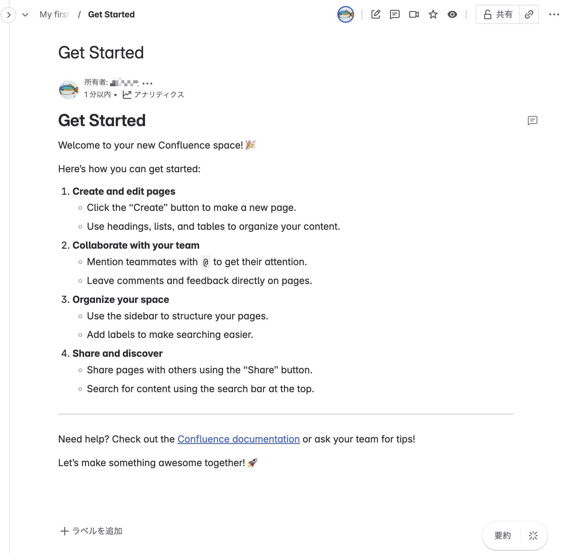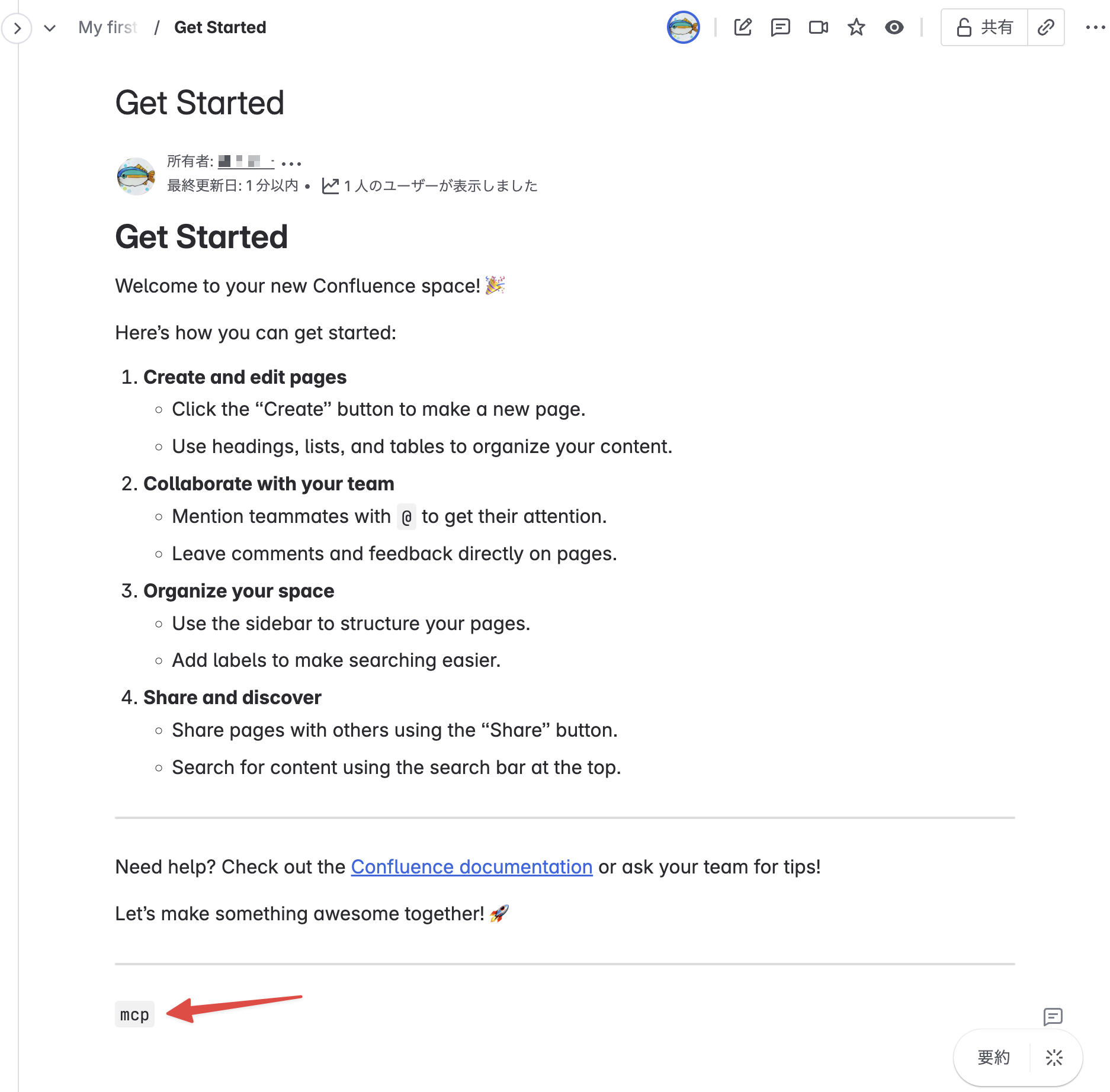 Confluence を見てみると Get started ページができていた。 特に内容は指定しておらず、選択したモデルの GPT-4.1 が勝手に Confluence の始め方をまとめてくれた。